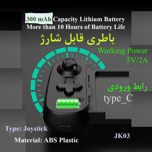 JK03 با گیره قابل تنظیم در بازه 136 تا 215 میلیمتر بهگونهای ساخته شده که گوشی شما را کاملاً محکم نگه دارد و بدون کوچکترین لغزش، امکان بازی طولانیمدت را فراهم کند. این محصول، همراهی بینظیر برای گیمرهای حرفهای و آماتور است که به دنبال کنترل دقیق، سرعت بالا و عملکرد روان هستند.